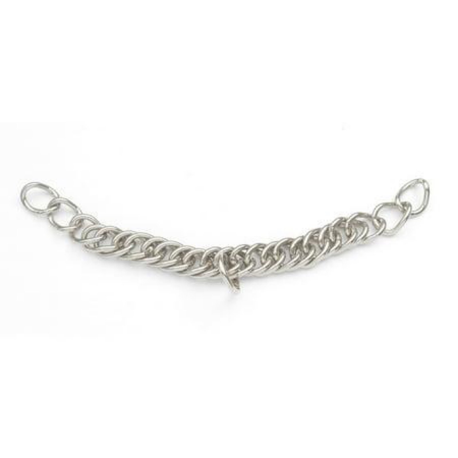 Ensure proper function of your curb bit with the Centaur Double Link Curb Chain. Made from durable stainless steel, this curb chain features smooth double links that lie flat against the horseβs chin groove for comfortable and consistent contact. Designed for use with English curb bits such as pelhams, kimberwickes, and double bridles, the chain helps stabilize the bit and regulate the leverage action when rein pressure is applied. A center ring allows attachment of a lip strap, helping keep the curb chain properly positioned during riding.