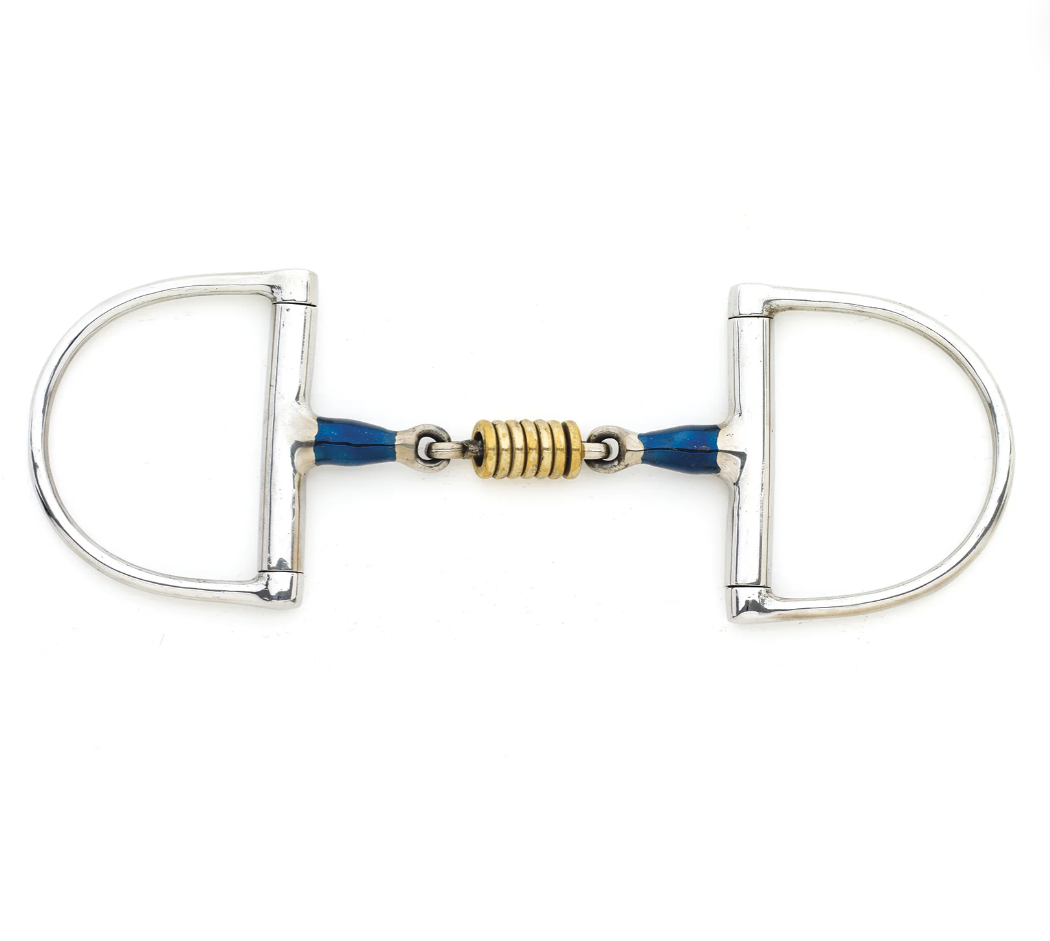 Blue steel horse bit designed to encourage salivation and improve comfort and acceptance. 🐎