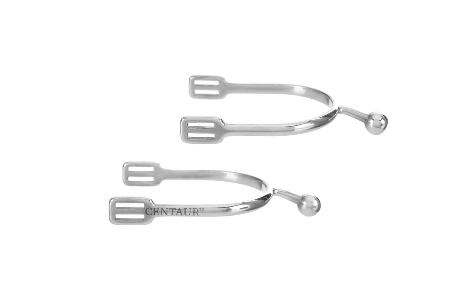 Made to fit slightly above the heel, these lightweight spurs feature rounded branches with standard loops on either side to accommodate leather or synthetic spur straps. The curved neck features a round end ideal for sensitive horses.