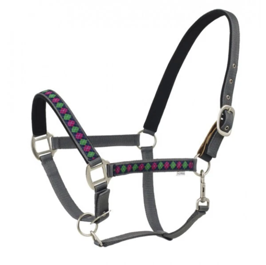 Argyle print padded breakaway halter with nubuck nose and crown for comfort and added safety. 🐎