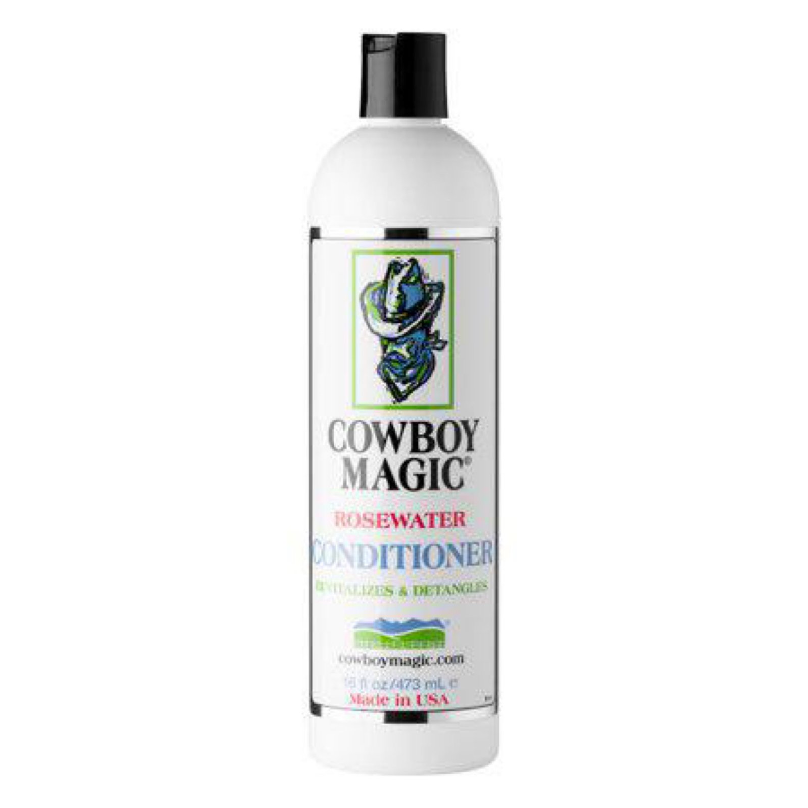 Hydrate and restore your horse’s mane, tail, and coat with Cowboy Magic Rosewater Conditioner, a concentrated grooming conditioner designed to detangle, moisturize, and strengthen hair. This rich formula helps dissolve mineral and chemical buildup left by hard water while leaving the coat soft, shiny, and easy to manage. Enriched with silk proteins, honey, and panthenol (Provitamin B5), it helps improve elasticity, reduce breakage, and keep hair smooth without heavy residue. The pH-balanced formula is gentle on sensitive skin and works quickly, so only a small amount is needed to deeply condition and restore healthy shine to your horse’s mane and tail.