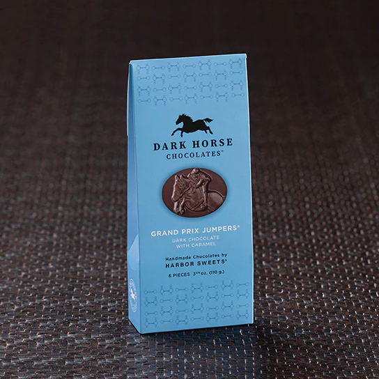 The thrill of grand prix jumping depicted in rich, dark chocolate covering creamy butter-caramel – 6 Pcs