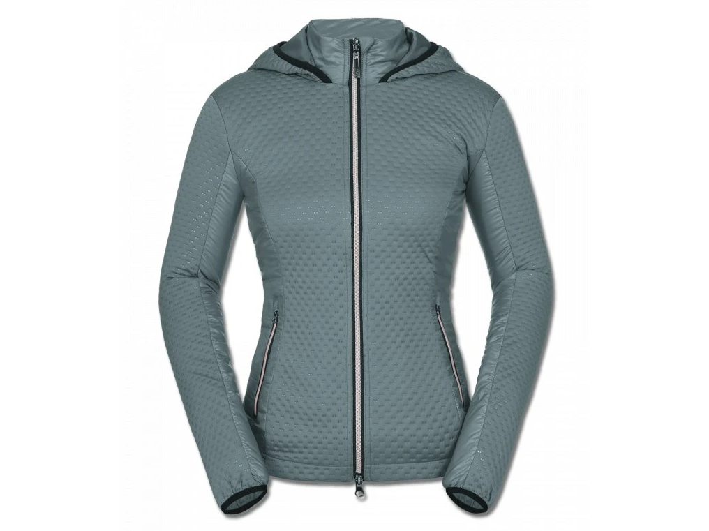 Lightweight, breathable jacket made of high-tech materials, provides sufficient warmth, water-resistant and windproof, great for spring. Padded sides and gathered front, elastic cuffs, two zip pockets, two-way zip fastening, attached hood, zip details in a fashionable rose gold look. Outer material: 100% nylon, lining: 100% polyester.