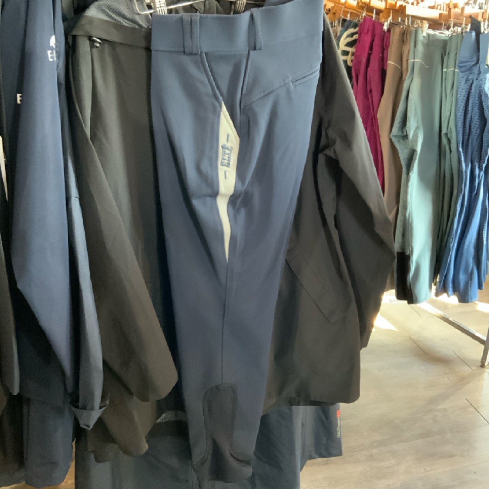 - belt loops, bi-elastic material and breathable