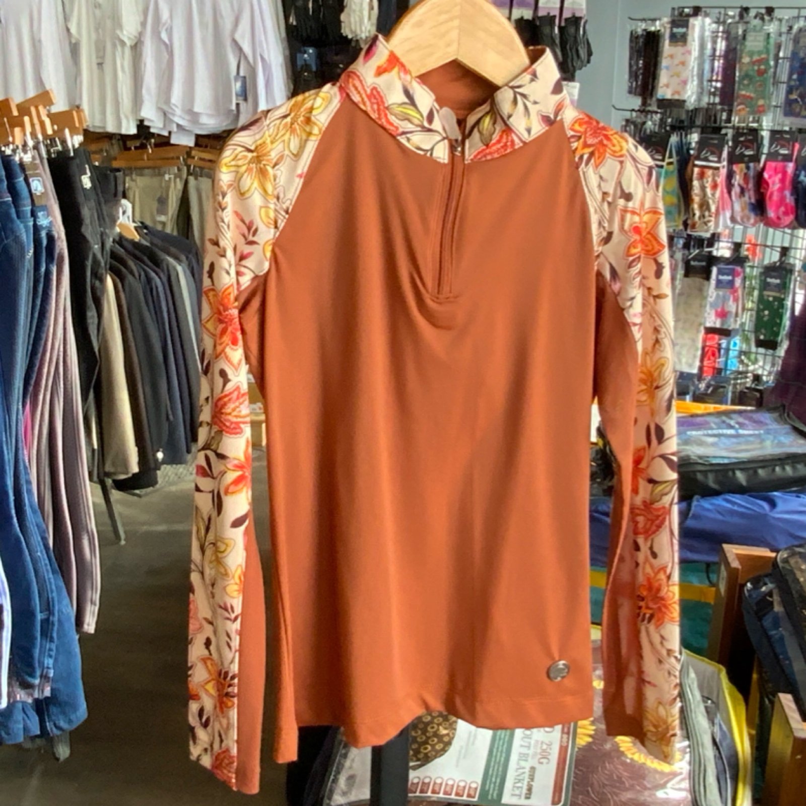 The vibrant flower design adds a fun and stylish touch, while the functional features, such as moisture-wicking and quick-drying properties, ensure young equestrians stay comfortable in the saddle.