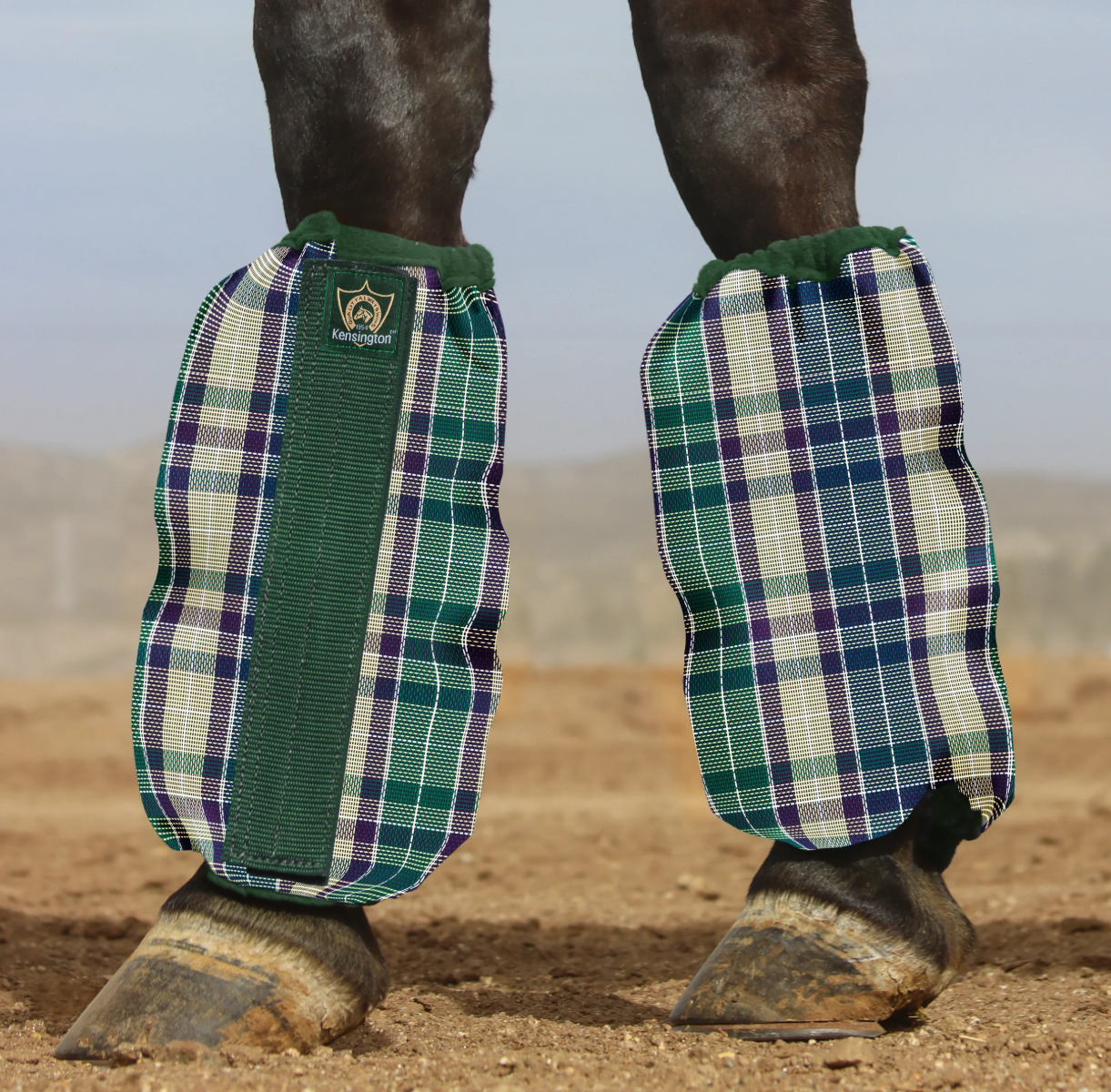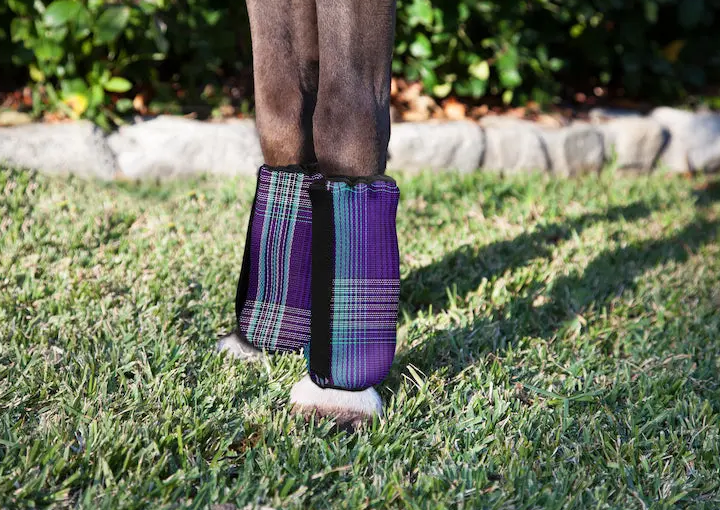 Keep your horse comfortable during fly season with the Kensington Bubble Fly Boots. Designed with a roomy “bubble” shape, these boots allow excellent airflow while helping protect the legs from biting insects that cause stomping and irritation. Features include durable and breathable Textilene® mesh construction, a bubble design that maximizes airflow and reduces skin contact, soft fleece trim at the top and bottom for comfort, a long vertical hook-and-loop closure for easy on and off, and a set of four boots for full leg coverage.