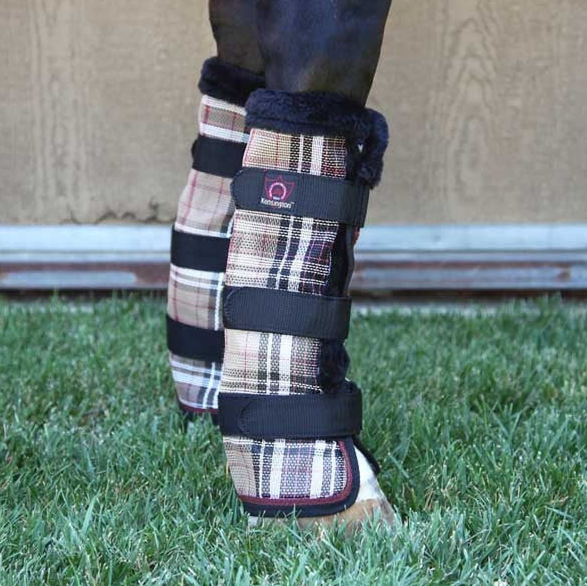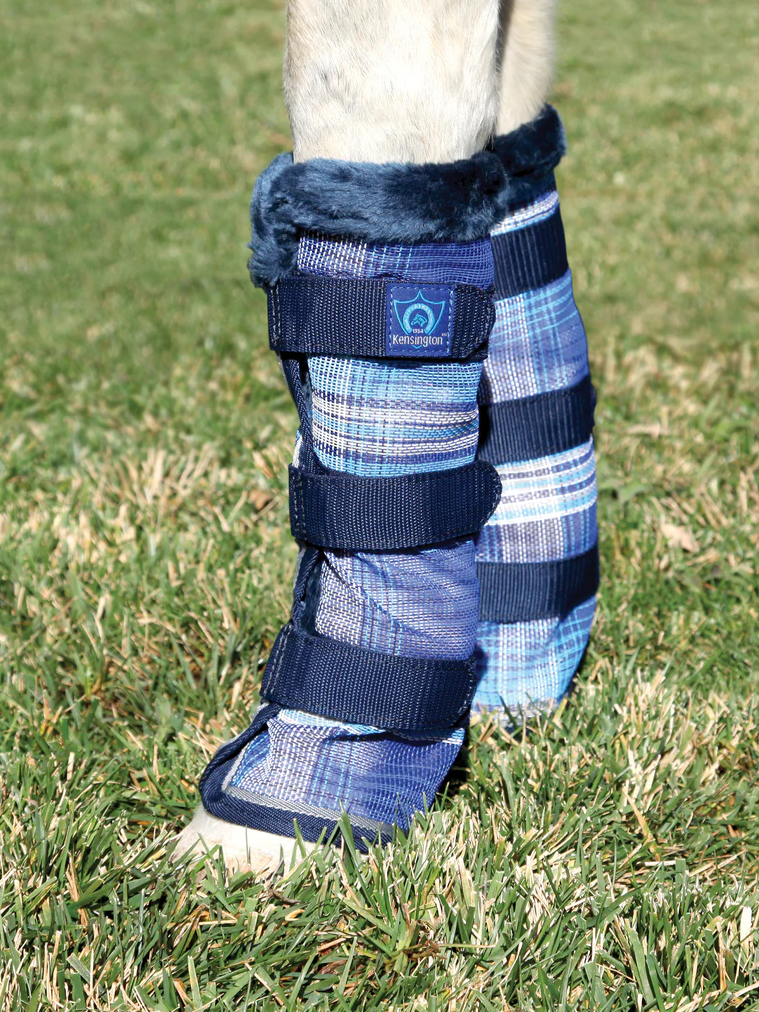 Help protect your horse’s legs from biting insects with the Kensington Non-Collapsing Fly Boots. Made from durable Textilene® mesh, these fly boots provide excellent airflow while shielding the legs from flies, mud, and debris during turnout. Features include Kensington’s Stay-Up technology with a built-in plastic stay that keeps the boots upright, breathable Textilene mesh that blocks up to 73% of harmful UV rays, soft fleece trim for added comfort, and three hook-and-loop closures for a secure fit.