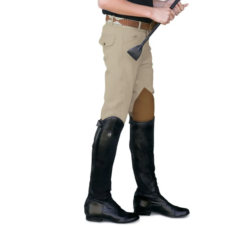 The 4-Pocket Breech for boys features knee patches, front zip, and hook and loop closures at the ankle. The EuroWeave woven mid-weight material with poly-viscose elastane is the perfect material for a boys’ riding breech as it’s not clingy or revealing like ordinary knit breeches.