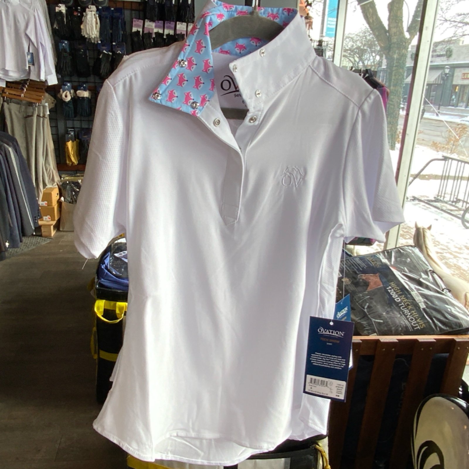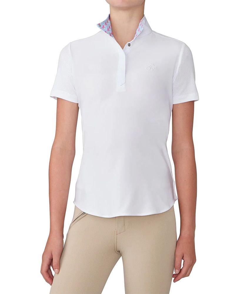 This show shirt is a classic ratcatcher styling with fun patterned inside collar, plus updated features to keep you cool and comfortable. Dry-Texâ„¢ microfiber mesh sleeves and back creates maximum cooling effect for high performance. Moisture wicking smooth stretch jersey front, with trendy wrap collar.