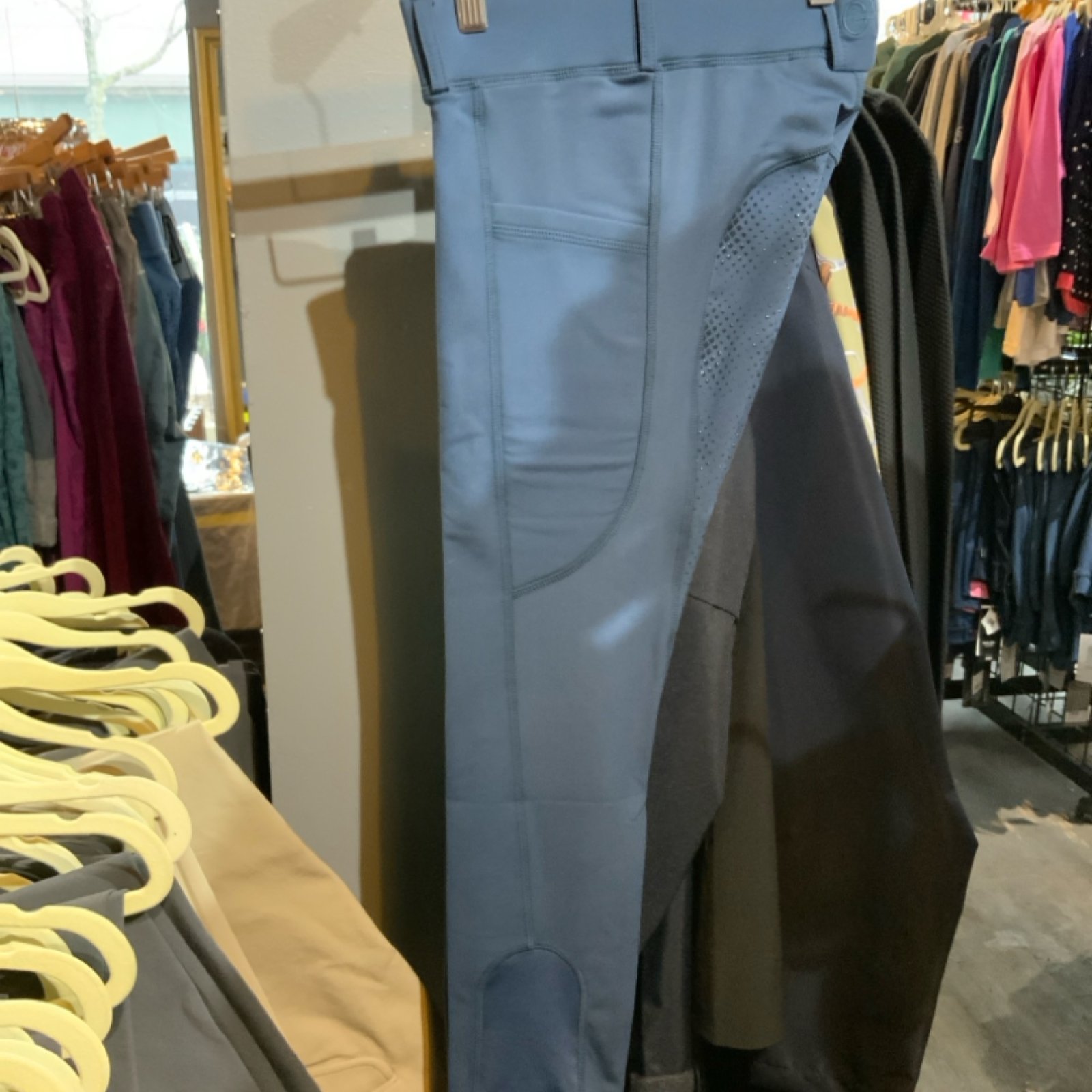 Equinoxâ„¢ Pull On Tights with Grip-Tecâ„¢ Silicone are constructed with Equinoxâ„¢-Knit, a mid-weight polyester spandex with plush brushing inside and smooth, breeze resistant surface that retains warmth while wicking moisture. Along with a Grip-Tecâ„¢ silicone full seat, these pull-on dressage tights feature a brushed inside for chilly days and Southern winters.