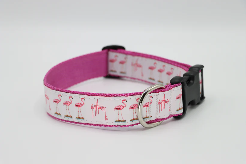 Preston Leather Collar by Guy Harvey Flamingos 1 1/4″