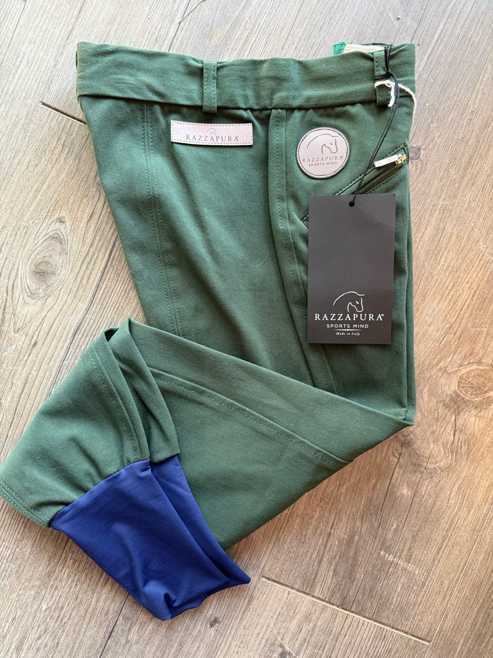 The Razza Pura Bambino Breeches (Verde) are stylish kids’ riding pants in a vibrant green (“verde”) hue, crafted from flexible, breathable fabric to help young equestrians stay comfortable and move freely in the saddle.