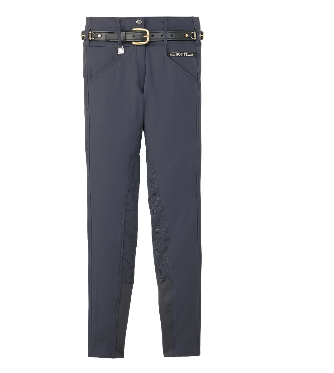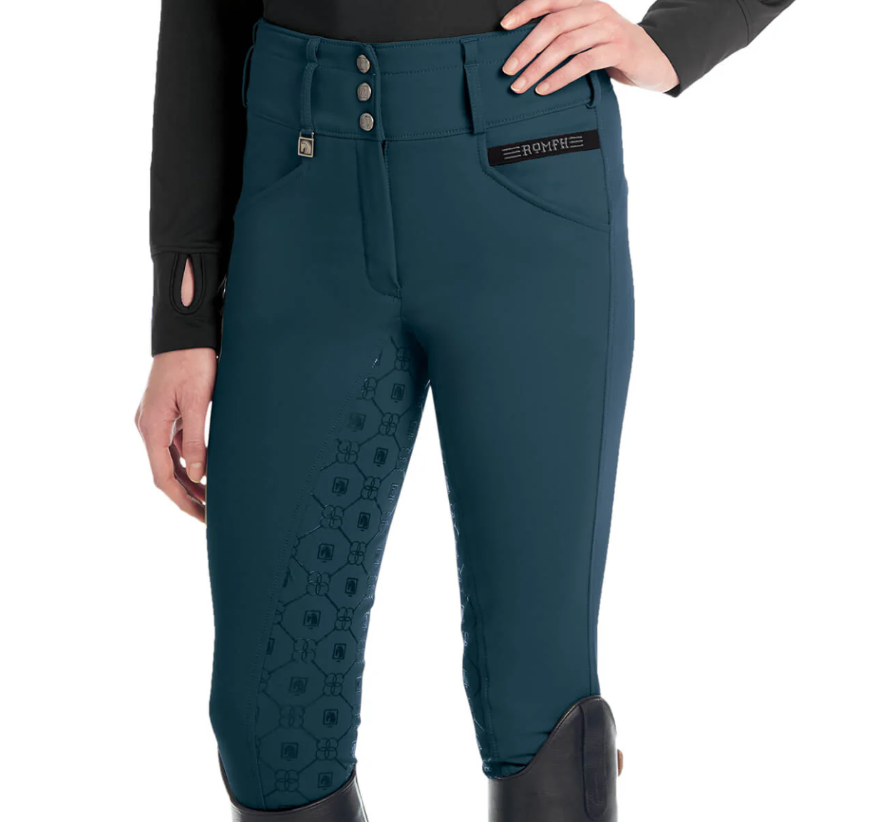 The Romfh® Isabella Silicone Full-Grip Breech is made of exclusive cooling Soft-Touch fabric in the curvy cut breech. This “Curve Fit” is a special cut to reduce any gapping at the back waist; it is nipped in at the waist and cut fuller through the seat and thigh for a perfect fit on curvy girls.