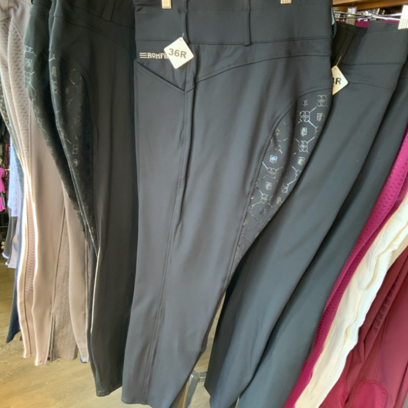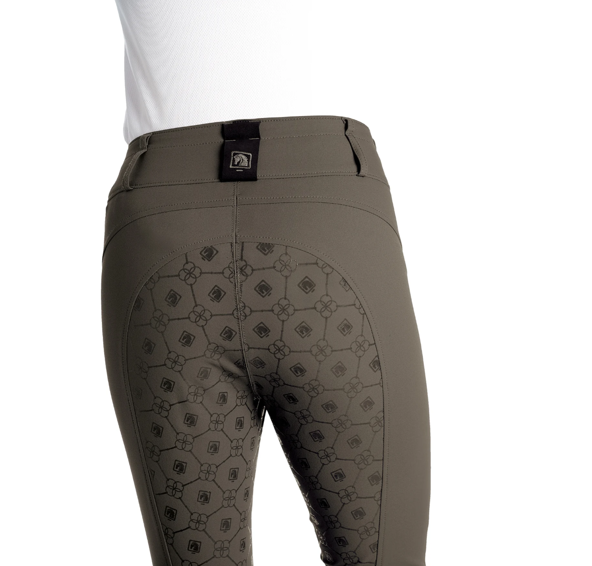 This ladies′ breech provides the high-waist fit desired by top-level riders. A silicone print on the seat provides a secure grip in the saddle without the added bulk of a full-seat layer.