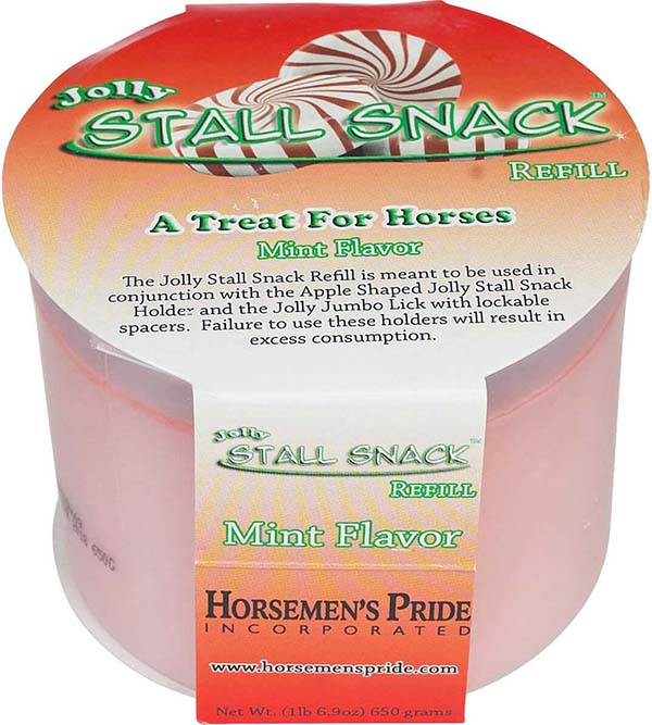 The Stall Snack Refill provides a long-lasting treat designed to keep horses engaged in the stall. The refill fits compatible holders and encourages licking activity to reduce boredom. Perfect for stall enrichment.