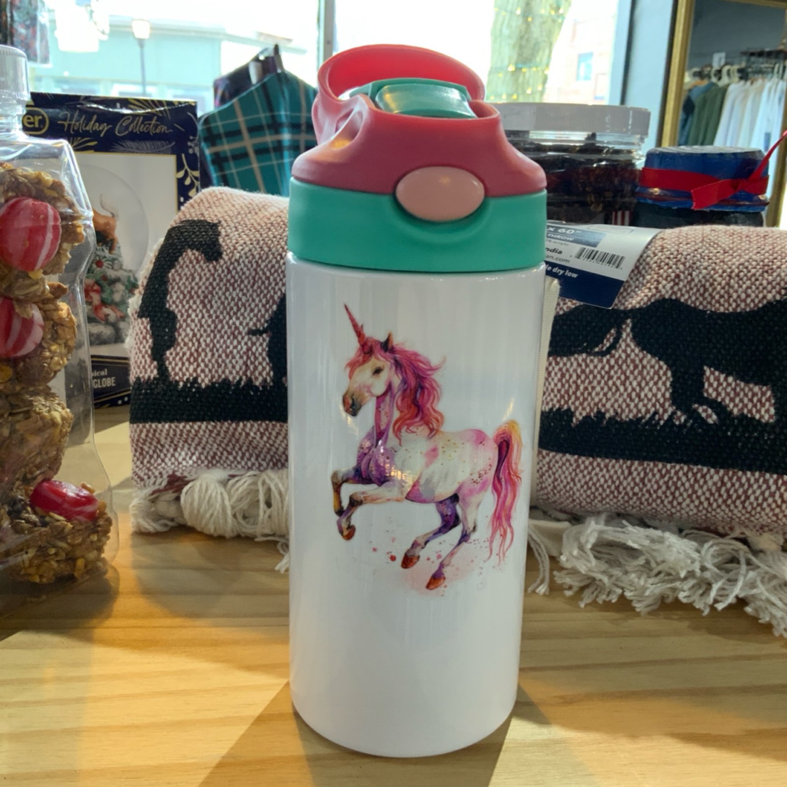 Make staying hydrated fun with this 12 oz Unicorn Kids Stainless Steel Bottle. Featuring a playful unicorn design kids will love, this durable bottle includes a convenient straw lid for easy sipping and stainless steel construction that helps keep drinks cool throughout the day. The smaller 12 oz size is perfect for little hands, making it great for school, the barn, or everyday adventures.